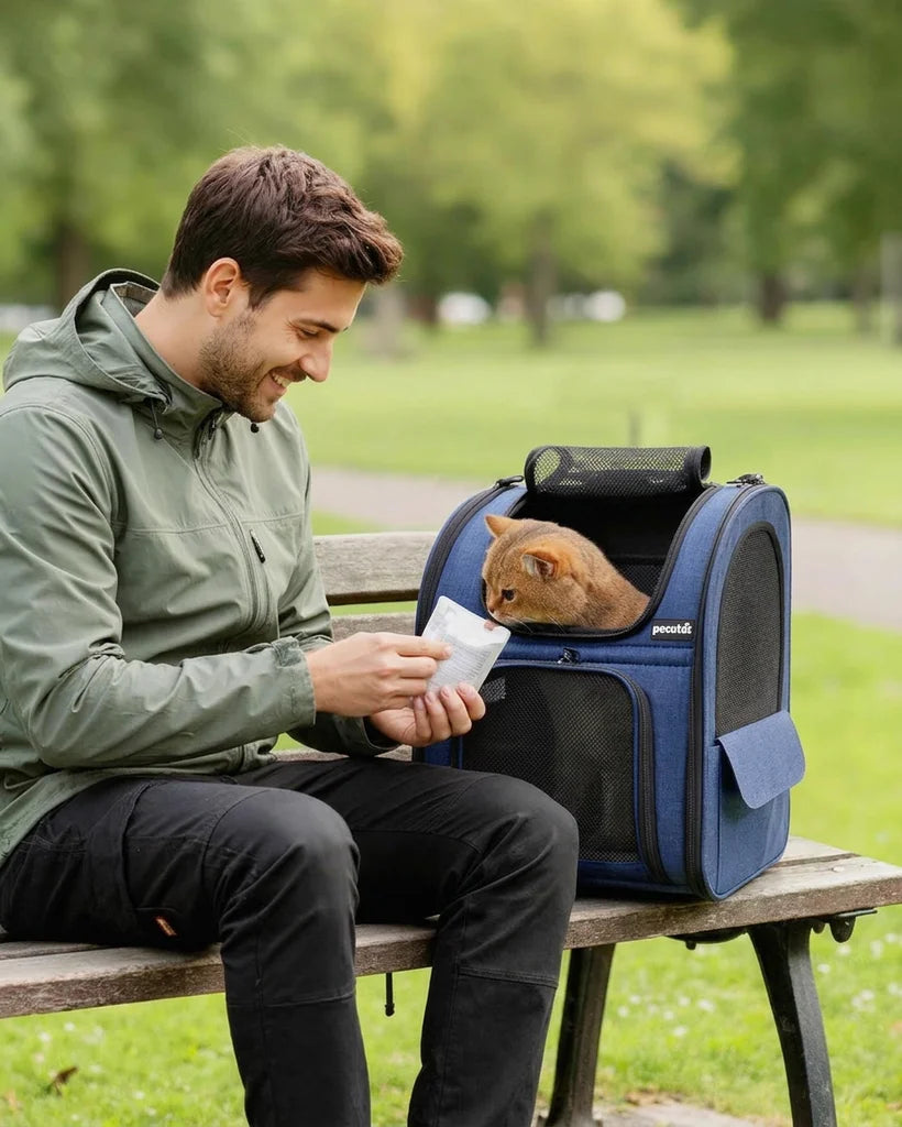 Introduce your companion to their MeowMate™ gradually. Let them explore it at home with the zippers open, perhaps with a cherished treat inside. This gentle introduction builds positive associations, transforming the carrier into a familiar, reassuring space. Soon, they'll view it as their personal cozy retreat for every journey.